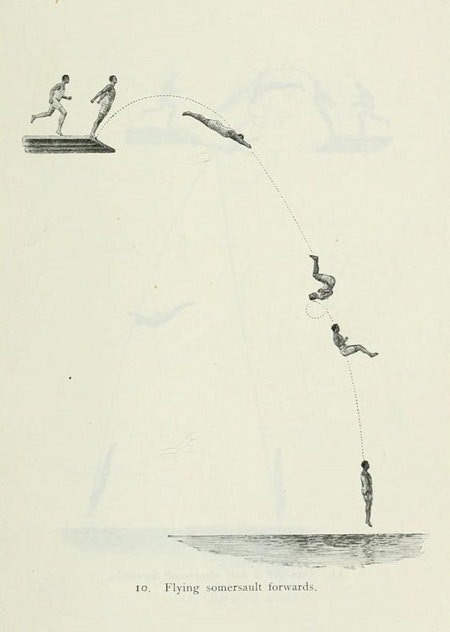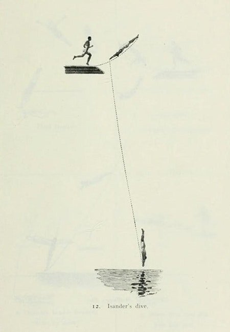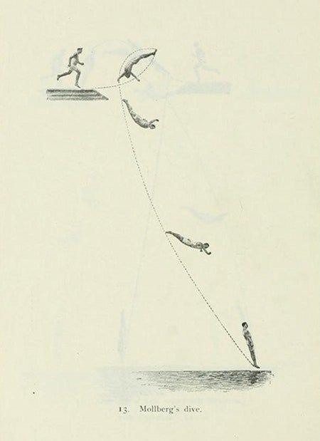 Keeping with the theme of taking a leap, here are some diagrams showing the trajectory of the major dives as performed at the 1912 Olympics in Stockholm.